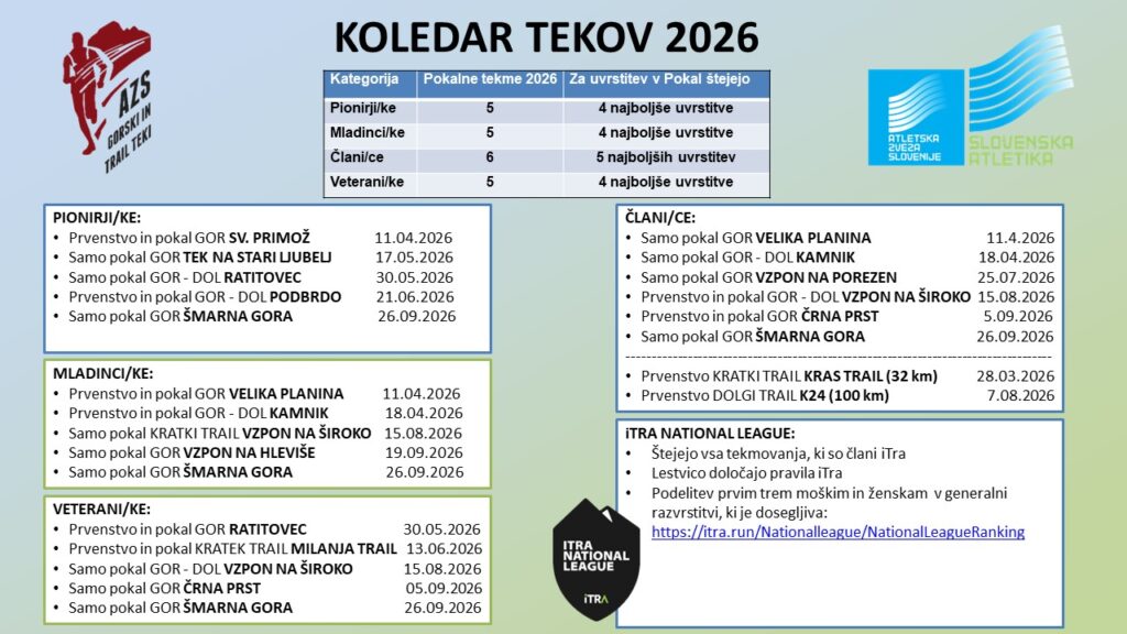 Vabljeni prav na vsa tekmovanja in predvsem na Evropsko prvenstvo v gorskih in trail tekih 2026 5. – 7. junij 2026 , ki bo na domači VELIKI PLANINI.